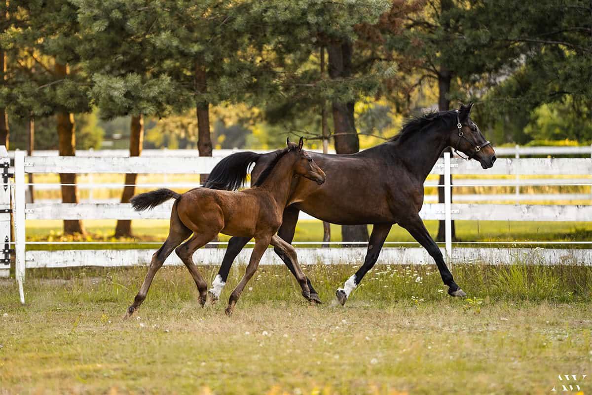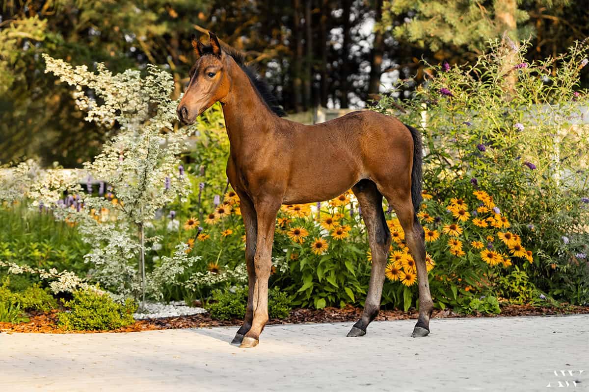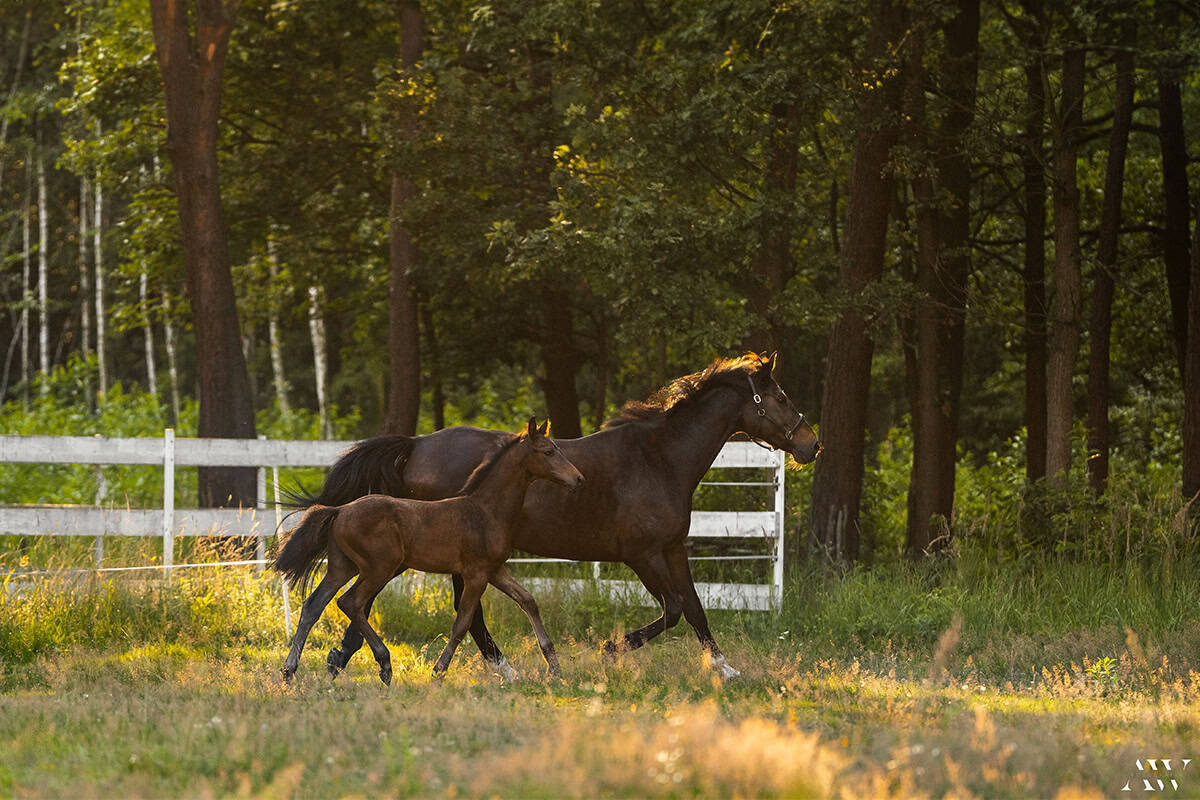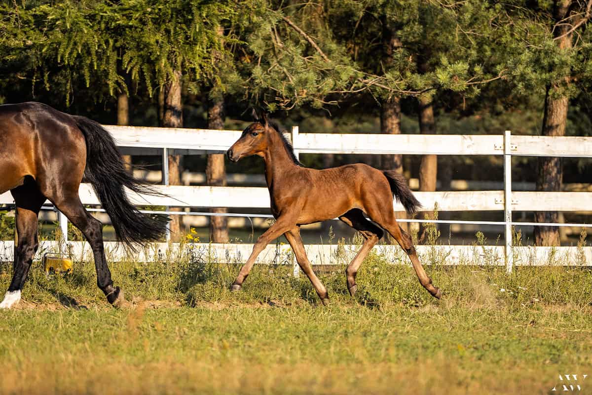 Agrado SF to żywiołowy, pełen energii, szybki i zwrotny ogierek o rodowodzie skokowym rasy polski koń sportowy urodzony w naszej hodowli Sejder Farm dn. 28.04.2024r. Ogierka charakteryzuje nowoczesny typ budowy, sucha długa noga, prawidłowe kopyta, prawidłowo osadzona szyja, przepiękna głowa oraz cudowny charakter – ogierek jest towarzyski, ciekawski i bardzo odważny. Nie kopie, nie gryzie, chodzi na kantarze i uwiązie w ręku, przyzwyczajony do kowala oraz wszelkich zabiegów pielęgnacyjnych, w tym korzystania z myjki, bez problemu wchodzi do bukmanki, a zatem na tak wczesnym etapie rozwoju wykazuje zainteresowanie nowościami i zrównoważony charakter.